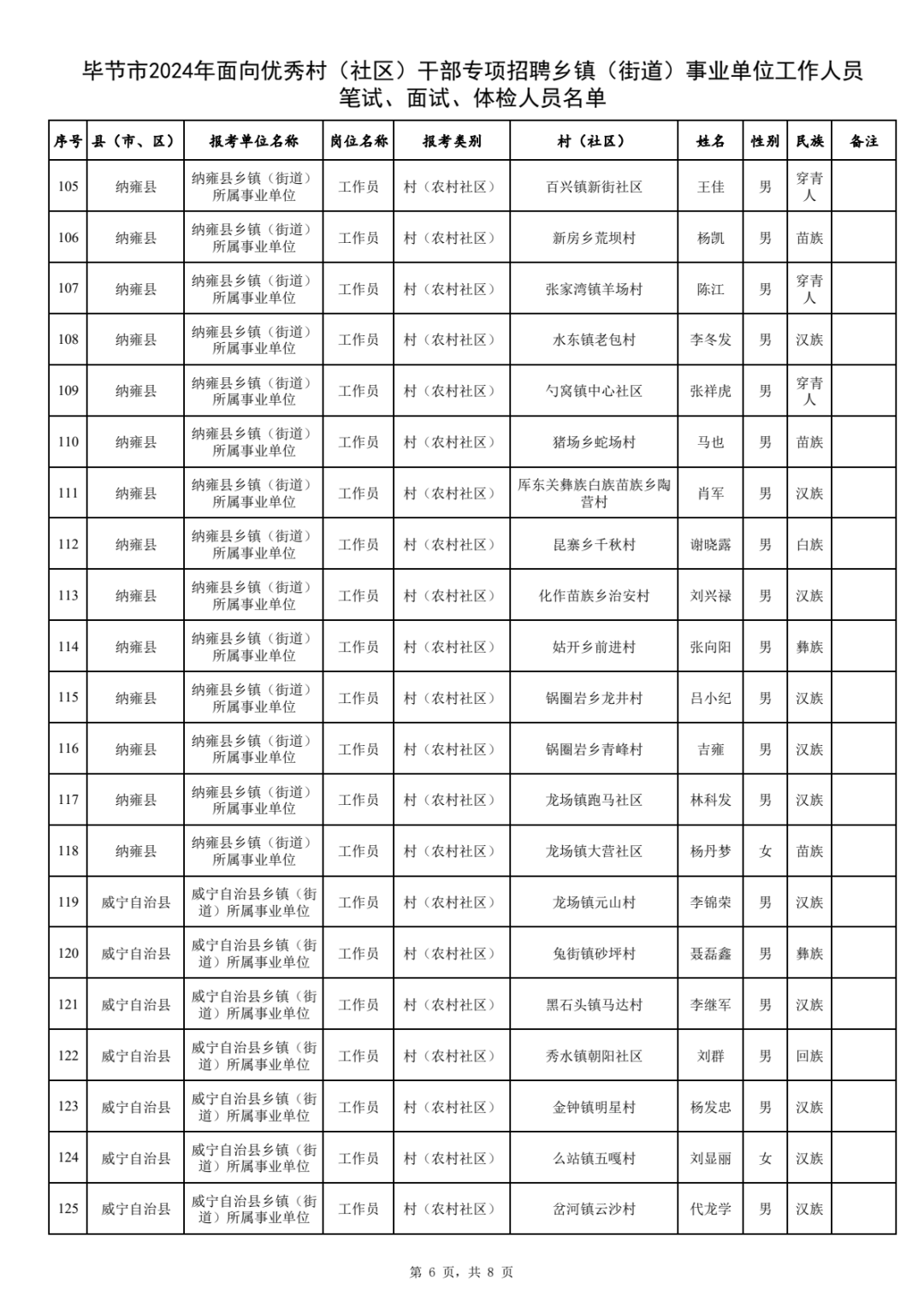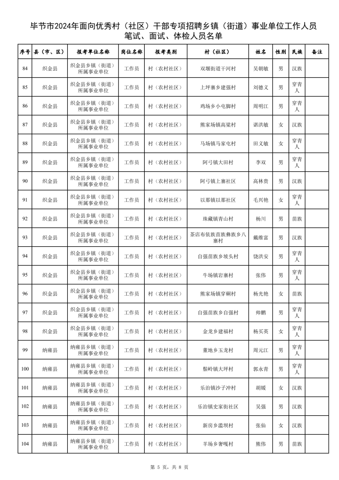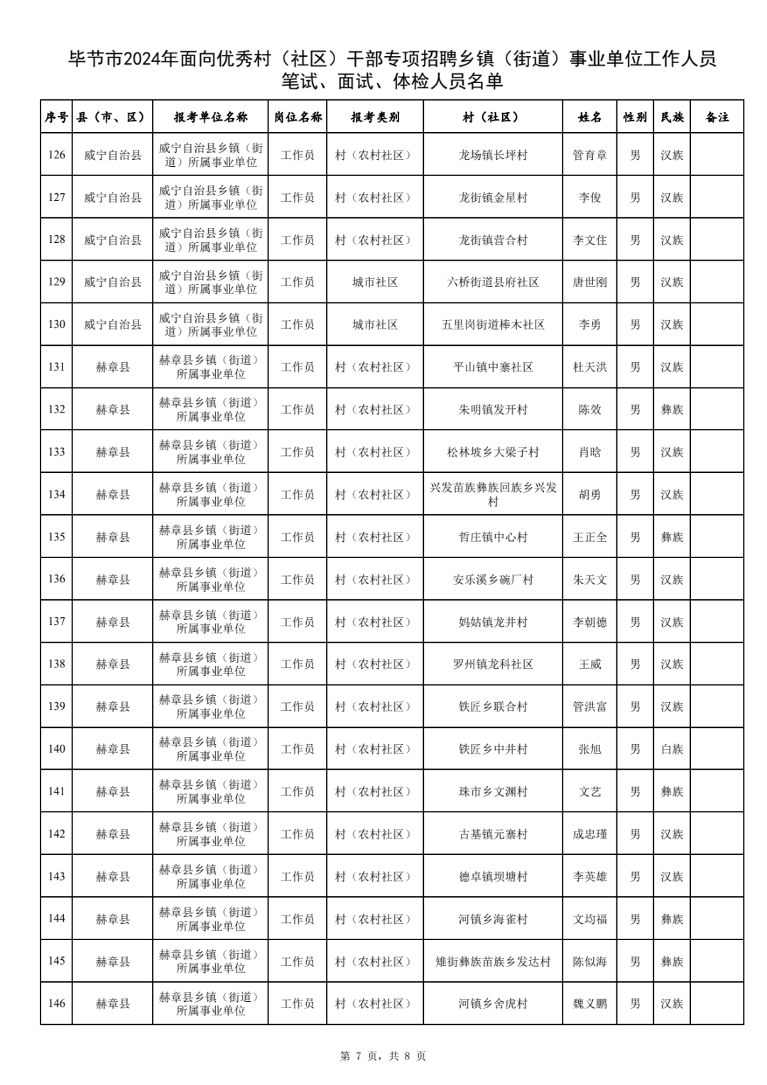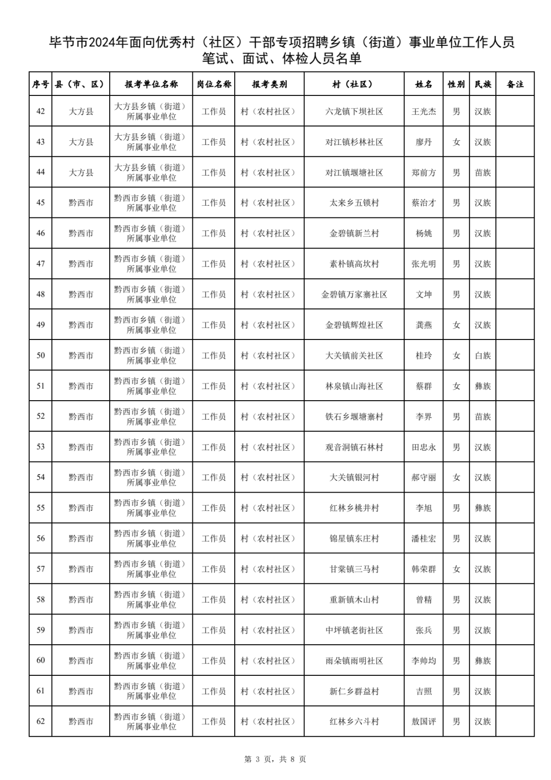 附件:毕节市2024年面向优秀村(社区)干部专项招聘乡镇(街道)事业单位工作人员笔试、面试、体检人员名单